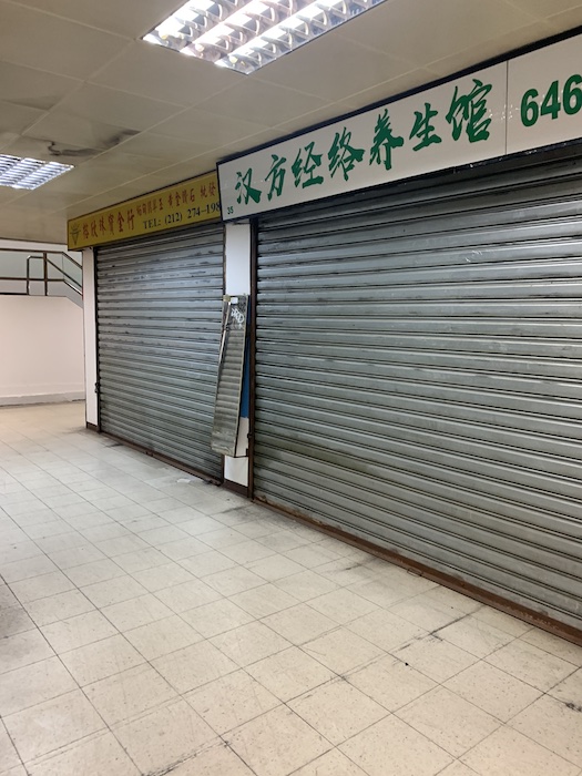 Anyhow, the East Broadway Mall is one of the coolest malls to have existed. This is, first things first, because it’s built like a secret under the Manhattan Bridge in Chinatown. It is also experiencing a state of pure liminality. Walking in just after 3 p.m. — or probably any time of day — you’ll be one of only a few non-employees in this mall. There are about five businesses open: a hair salon and a smattering of others whose services I can’t quite discern. Most any sign in the mall is in Chinese, other than the silver ’80s-office “East Broadway Mall Inc” on the outside. It’s so quiet that shop owners sit outside their shops chatting with each other.