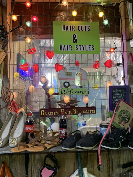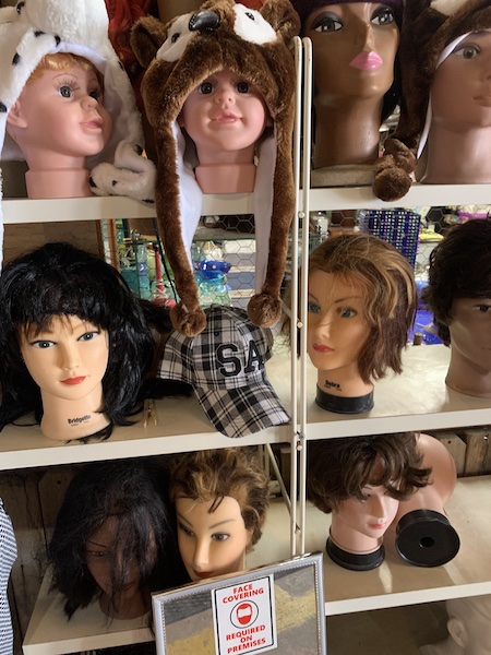 The man slowly walks towards us with an outstretched, high-five-ready palm. We have about five seconds to prepare and raise our hands as that ’80s-reggae cover of “Fools Rush In” plays over a distant speaker. Everything looks a little crazy in here, starting with a bunch of mannequin heads by the entrance wearing severely windblown wigs. My senses are firing off like a carnival ride.