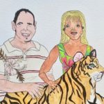 Molly is an Los Angeles artist whose subject matter, as their site describes, “blurs the intersection of the dreamy and the deranged.” That might mean paintings of crying Miss Universe pageant queens or people excitedly posing with tigers.