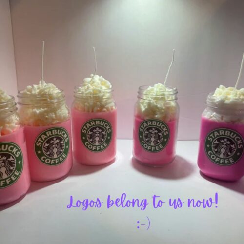 Before the internet, maybe a knock-off recipe of the Red Lobster biscuit was shared in a church cookbook. Now, we’ve got people printing radioactive Starbucks and Louis Vuitton logos side-by-side and selling them cheaply, employees showing us the gray stainless steel behind the pink, orange, red and yellow, and what I’m about to display below, these coffee-shop candles. Today’s corporate branding exclusively targets someone who is both somehow 15 and 50, but maybe projected visual dignity and the muted-neutral brand poetry book were an illusion anyhow. Here’s a Blogspot-era poem!