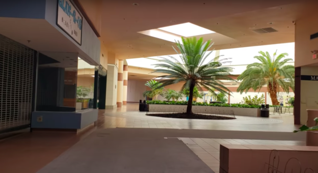A few dead mall enthusiasts have done walking tours through this mall here and here. Retail blog Labelscar attributes the mall’s quiet to “bland carpeting, giant palm trees, sterile marble planters, and three circus-like tents,” but we here at Indoor Pool Real Estate Agency think that with all the people GoProing their way through America’s failing malls right now, that’s exactly what we seem to want. This place’s indoor foliage is unmatched!