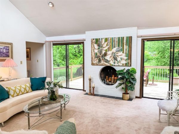 5 Fox Run is sandwiched between Fairwood Lake and a therapist. The staid wood-and-brick exterior belies an airy interior with a circular (!) fireplace flanked by two sets of sliding glass doors. You’ll feel comfortable spending time in the kitchen with a garden window over the sink and a island for lengthly forearm resting. (There seems to be a multitude of ovens!) Whoever lives here now enjoys what can only be described as sunny touches like funky-looking butler statues and yellow directors chairs, so we here at the agency believe you’ll be moving into a happy home.