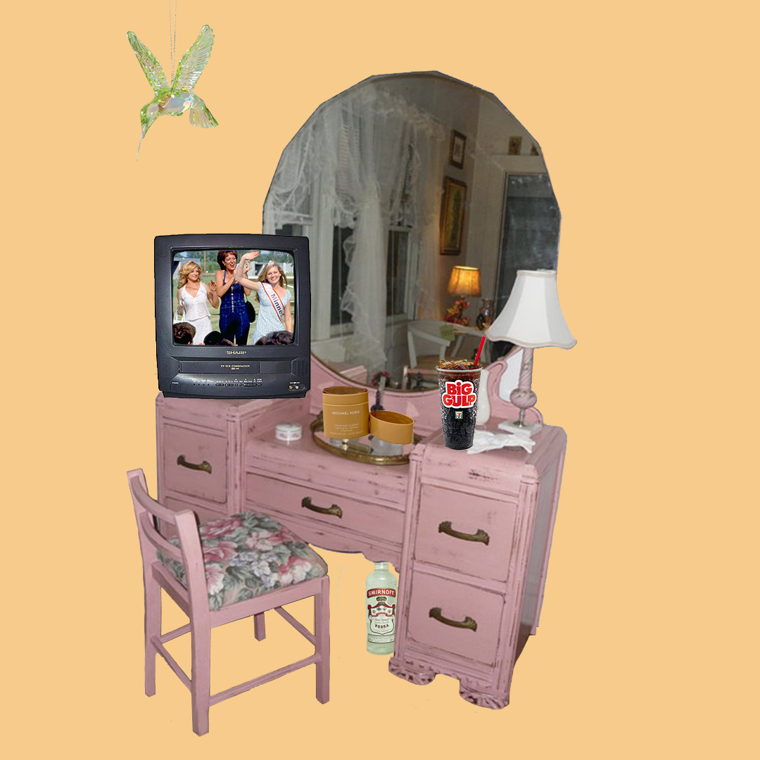Aunt Della swings by my house to pick me up in her giant silver truck and take me back to her trailer for a Girls Night. She has a small, glass hummingbird figurine that hangs from her rearview mirror and swings back and forth to the rhythm of the Dixie Chicks song on the radio. I think to myself “dang, I’m one lucky girl” as Aunt Della takes a swig of her Big Gulp of Diet Coke and vodka.