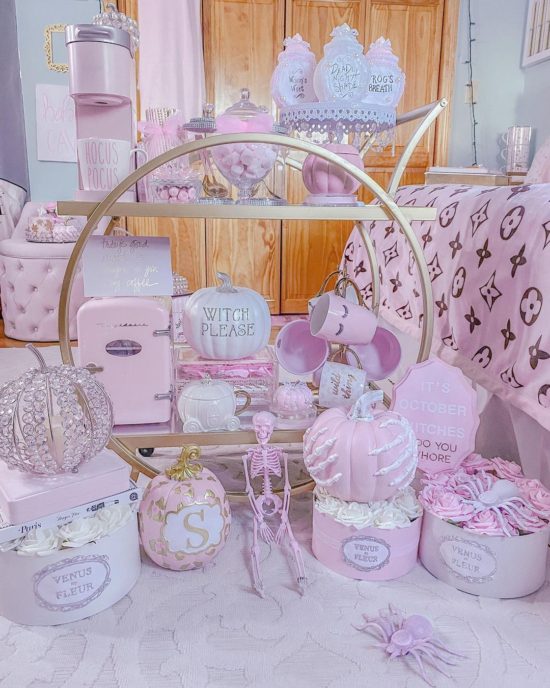 Hundreds of women are part of Instagram’s pink community, a social media collective obsessed with mostly soft shades of pink. The community’s size is hard to measure, but each time I search for more pink accounts, there are always new names. Hashtags like #pinkobsessed and #pinkfeed have thousands of posts, and most of them feature a similar tableau of the items mentioned above, plus pink pumpkins now for fall. The aesthetic exists at the intersection of Girls Next Door, a trip to Home Goods, and a fairy tale.