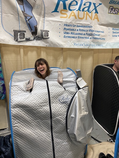 “Are you from Israel?” the sauna salesman, clipboard in hand, asked me as I sat in the personal-use sauna. “No, I’m from Texas!” I responded. He clarified that he meant, had I maybe been in the Israeli military because I seemed to possess some of the qualities of a woman who had served. This was just as random to hear as it is to write to you, right now, and JUST as alluring. “Something, I thought to myself, “is going on with those sauna sellers!”