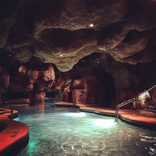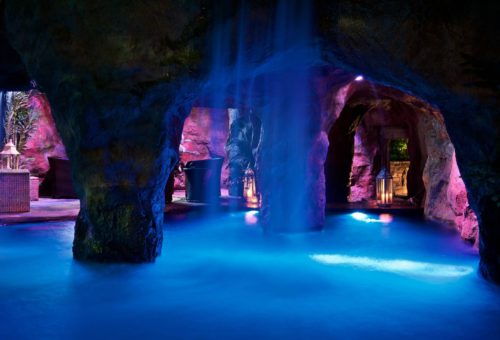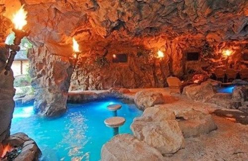 Tight, dark spaces began to lose interest to us, societally speaking, somewhere around the 90s. They began to connote sleaze, sex, germs. Here at Very Famous’ Indoor Pool Trend Forecasting Agency, we’re not sure we see grottos coming back, per se, though we would…love that. They are primarily wet and damp and dark. This does not bode well with our moral times and consuming desire for wellness!