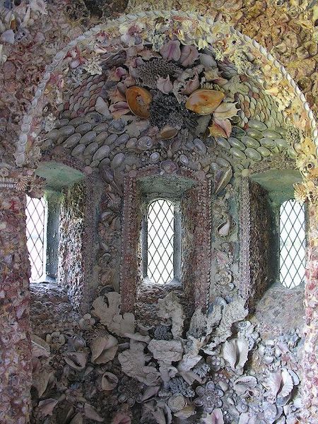 Searching “what is a grotto” brought up these two definitions: “a small picturesque cave, especially an artificial one in a park or garden” and “an indoor structure resembling a cave.” Like most things, the story of grottos involve God, sex and nature. Irish reverend G. (George) Gregory wrote about grottos in his 1816 gardening dictionary New and Complete Dictionary of Arts and Sciences. Grottos, as defined by Reverend and gardening fan Gregory, were “adorned with rustic architecture, and their inside with shell-work, fossils, etc.” An exact recipe was also included for mixing the cement for your artificial grotto.