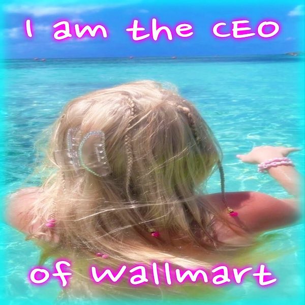 A few weeks ago, an image popped up on my Instagram discover page of a blonde head staring out at the ocean. It was an ocean-spray filtered photo accompanied by comic sans-esque fuchsia text reading, “I am the CEO of Wallmart.” It was perfectly random and perfectly aquamarine.